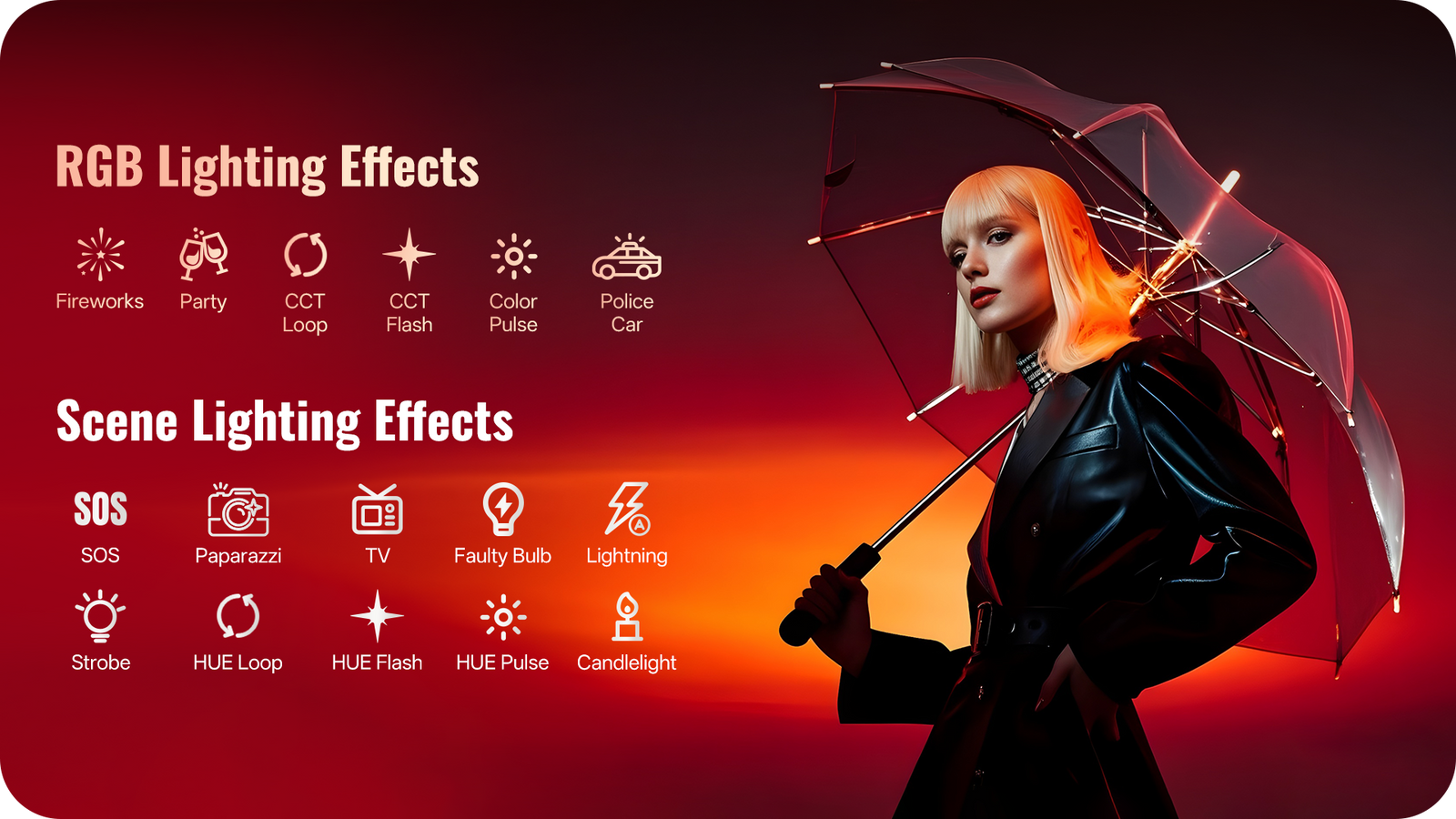 - ✔️ 18 спецэффектов для создания креативного освещения